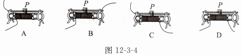 1. 图 12-3-4 是滑动变阻器接入电路的四种方式。其中,当滑片 P 向左滑动时,连入电路的电阻变大的接法是(