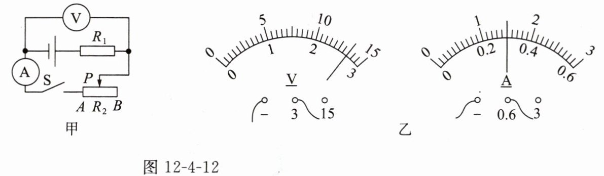 (选填“变大”“变小”或“不变”)。当滑片$P$在滑动变阻器的某位置时,电压表和电流表的示数如图12-4-12乙所示,则电阻$R_{1}$的阻值是11