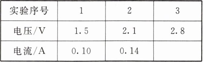 (3)纠正错误后,闭合开关,测得的几组数据如下表所示。第3次实验时电流表的示数如图12-5-2乙所示,电流表的示数为
