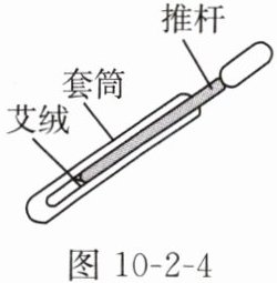 5. 图 10 - 2 - 4 是我国古代发明的取火器的模型图,把木制推杆迅速推入牛角套筒时,杆前端的艾绒立刻燃烧起来,这是通过