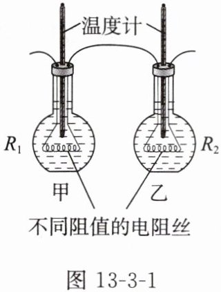 3. 图 13 - 3 - 1 是“探究通电导体产生的热量与电阻大小的关系”的实验装置,已知 $ R_1 < R_2 $,甲、乙两瓶内装有等量的煤油。