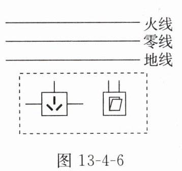 7. 用笔画线代替导线,把带有开关的插座正确地接入如图13-4-6所示的家庭电路中。