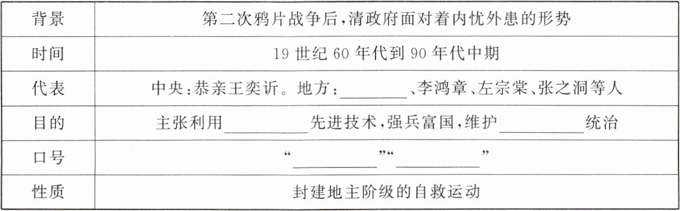 阅读教材相关知识,完成洋务运动内容的学习。