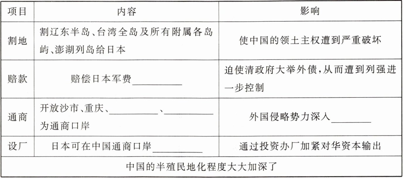 (3)结果:1895年3月,清政府与日本签订中日《马关条约》。