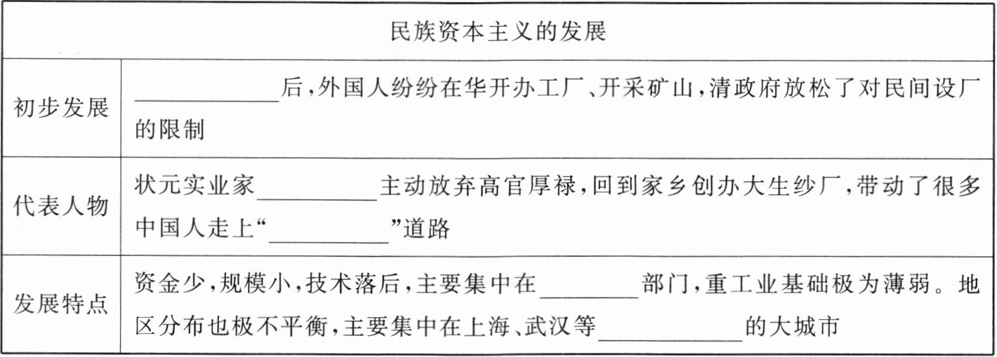 阅读教材相关知识,完成民族资本主义的发展内容的学习。