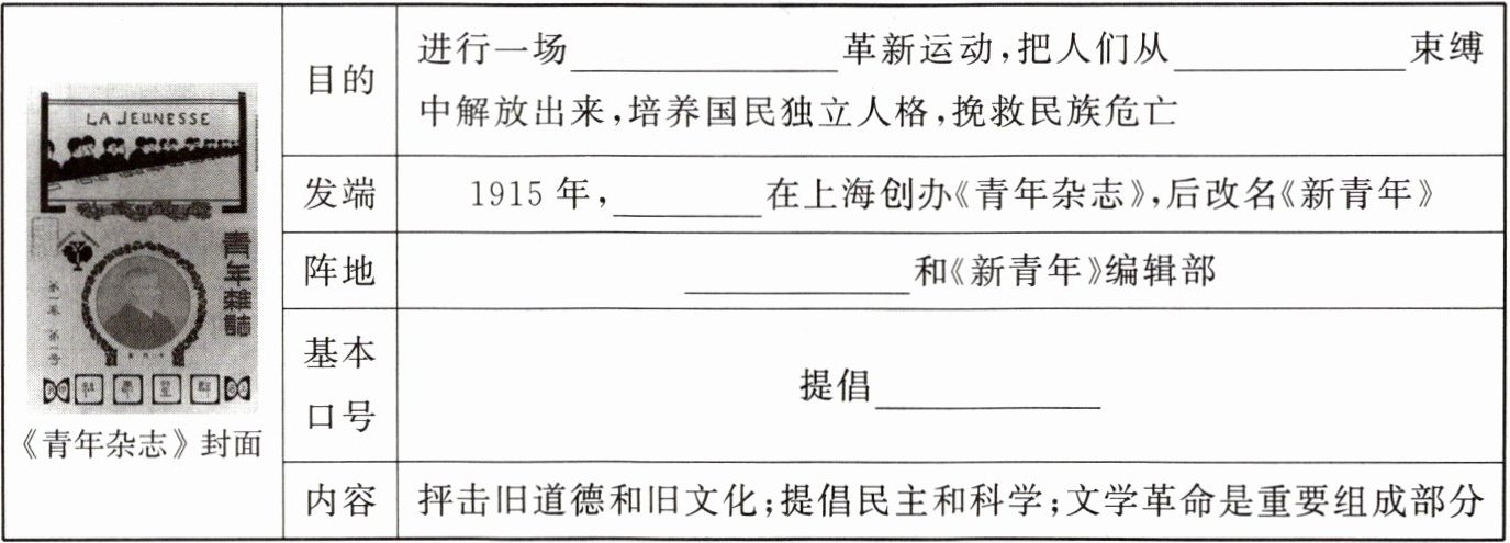 阅读教材相关知识,完成新文化运动的兴起内容的学习。