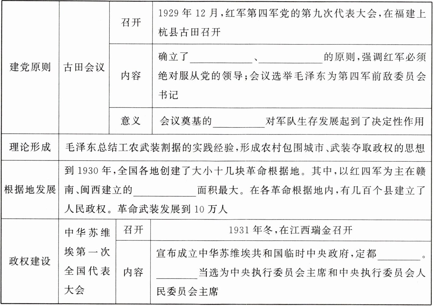 土地革命 工农民主 游击战争 思想建党 政治建军 军队政治工作 中央革命根据地 瑞金 毛泽东