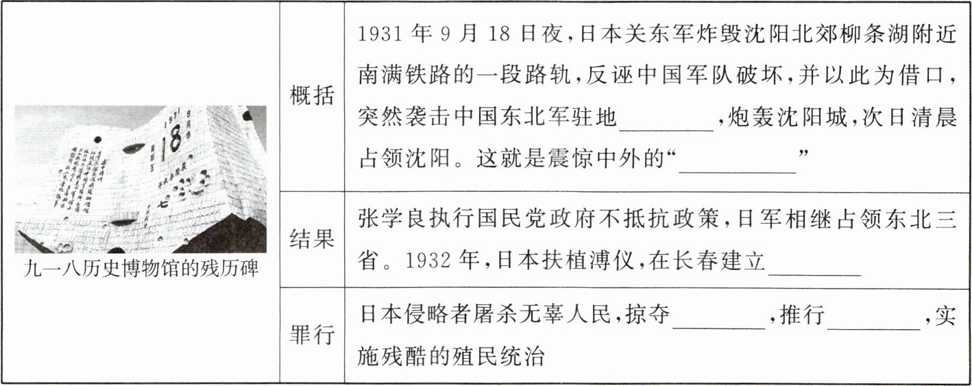 阅读教材相关知识,完成九一八事变内容的学习。