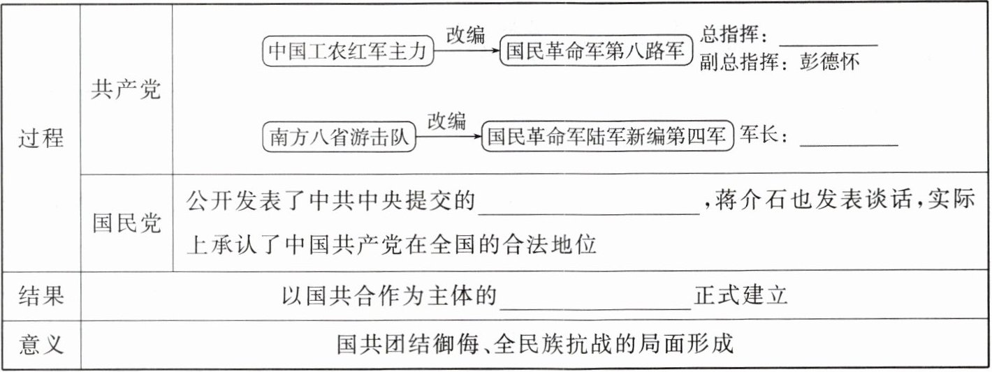 阅读教材相关知识,完成第二次国共合作内容的学习。