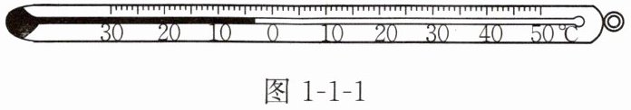 6. 使用温度计时,首先要观察它的量程和认清它的__________。图1-1-1所示温度计的量程是__________,分度值是__________,示数是__________。