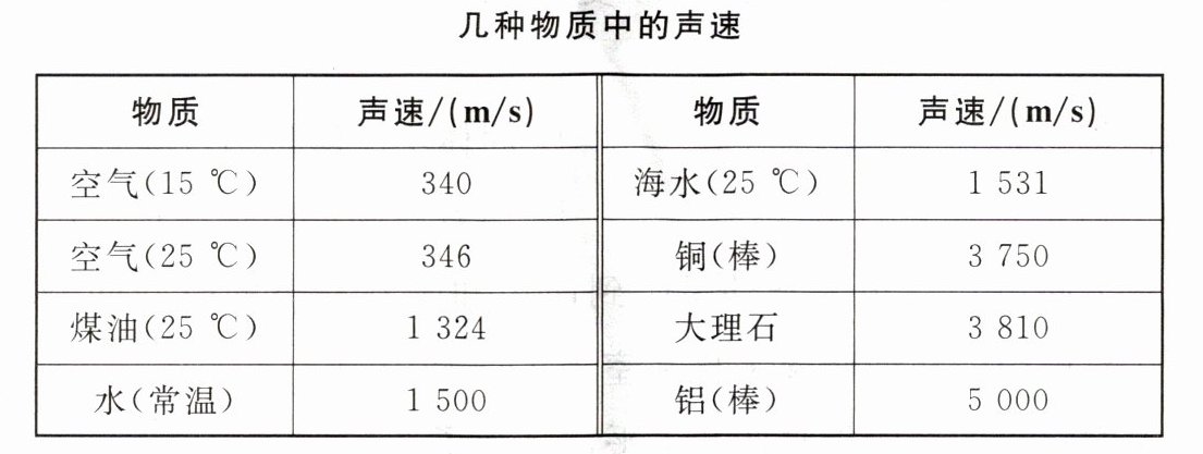 4. 下表中记录了几种物质中的声速,据此回答下列问题。