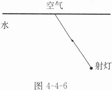7. 如图 4 - 4 - 6 所示,清澈平静水面下的射灯射出一束光,从水中斜射到水与空气的界面时发生反射和折射。若入射光线与界面成 57°角,反射光线与折射光线的夹角为 100°,则反射角的大小为