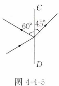 5. 如图 4 - 4 - 5 所示,光在玻璃和空气的界面 CD 处同时发生了反射和折射,下列说法正确的(
