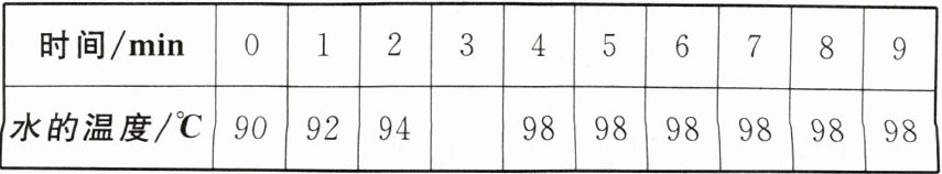 (3)当水温升到90℃时,每隔1min记录一次温度计的示数,直到水沸腾5min后停止读数,部分数据记录如下表。第3min的数据没有记录,当时温度计的示数如图1-3-1乙所示,请将该数据填在表格内。