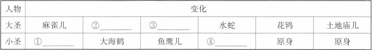 |小圣|①______|大海鹤|鱼鹰儿|④______|原身|原身|
