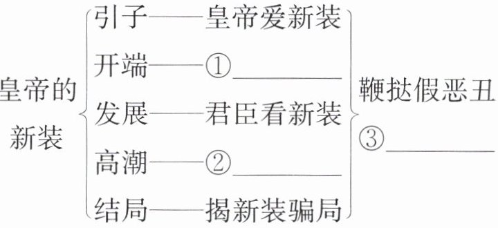 ①骗子做新装 ②穿新装游行 ③呼唤真善美