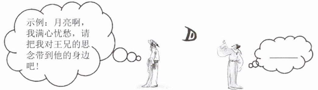示例:月亮啊,我满心忧愁,请把我对王兄的思念带到他的身边吧!______