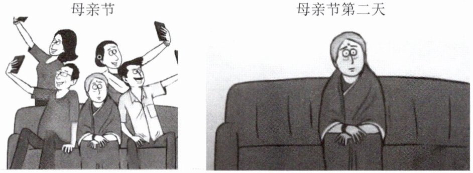 (1)【任务一:拟写标语】母亲是我们生命中不可或缺的人物,每年5月的第二个星期日是母亲节。针对漫画中的现象,请提前为明年的母亲节设计一条张贴于街道的公益宣传标语,不超过20字。(2分)