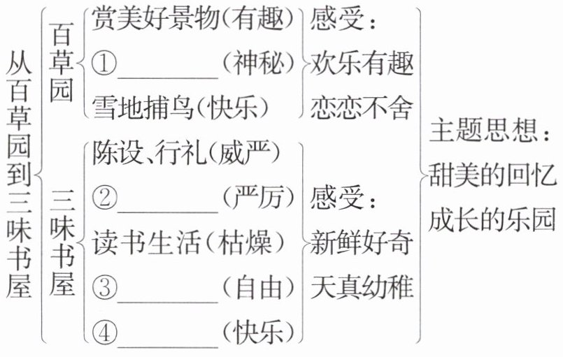 ①听“美女蛇”的故事 ②提问受斥 ③园中玩耍 ④偷偷画画儿