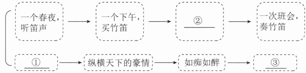 一个春夜,听笛声→一个下午,买竹笛→②______→一次班会,奏竹笛