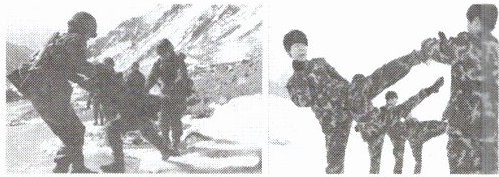 (3)【倾情留言】在“我军神威我感受”环节,小北同学展示了下面一组新疆军区某边防团的一支女兵排训练时的图片。请你仔细观察图片,并在图片下方的评论区留言。(2分)______