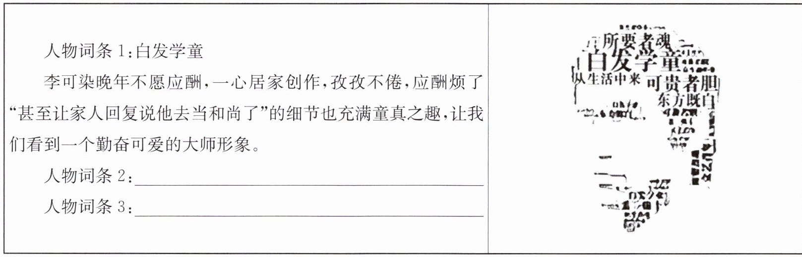 学校拟推出国画大师李可染作品展,为此,同学们开展了“探寻大师人生”主题活动,请你阅读传记,一起参与。