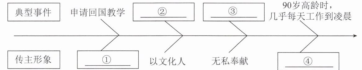 1. ①热爱祖国 ②多处讲学,传播文化 ③捐资建立“驼庵奖学金”和“永言学术基金” ④勤勉工作(每空 1 分)