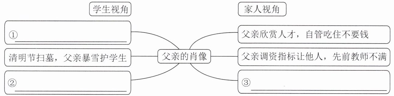 2. 【思维导图】请你速读选文第④~⑧段,从学生和家人两个视角概括与父亲有关的往事。(3分)