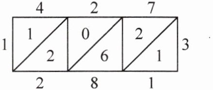 解析:题目考查“铺地锦”乘法计算方法,需要将每一步相乘的结果写在相应方格中,再沿斜线相加得到最终积。