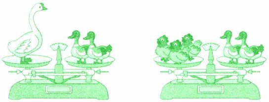 由于“大象”和“石块”使盆下沉到相同位置,所以它们的重量是相等的。