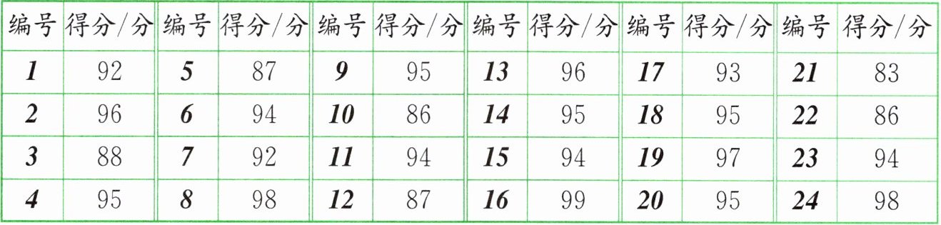 2. 电视台举办一场歌手大奖赛。参加比赛的 24 名选手得分如下: