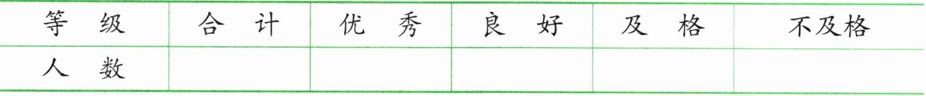 | 等级 | 合计 | 优秀 | 良好 | 及格 | 不及格 |