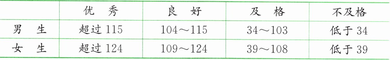 | 男生 | 超过 115 | 104~115 | 34~103 | 低于 34 |