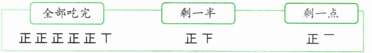 “剩一半”有$1$个“正”字外加$3$笔,所以人数为 $5 + 3 = 8$ 人。