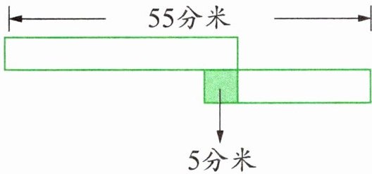 5. 如图所示,铁匠师傅把两根铁条焊接成一根铁条,量得长55分米,焊接处(如下图涂色部分)用去5分米。已知其中一根铁条长35分米,另一根铁条长多少?