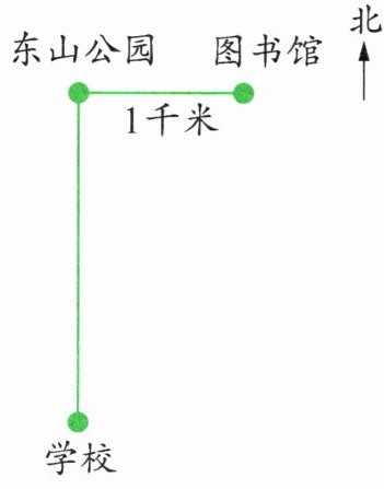 3. (1) 如图,东山公园离图书馆1千米,离学校大约( )千米。