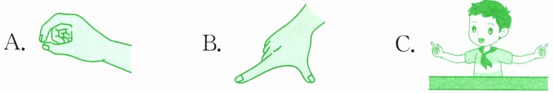 解析:本题考查对长度单位“分米”的直观认识,需要通过观察手势来判断哪个手势的长度大约是1分米。1分米大约是一个粉笔盒的长度,通常成年人一个手掌的宽度比较接近1分米。