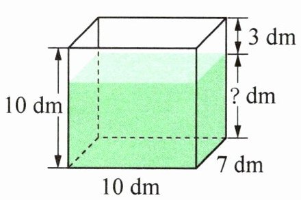 4. 如右图,长方体玻璃容器中存放了一些水。从图中,你能知道水深是多少分米吗?