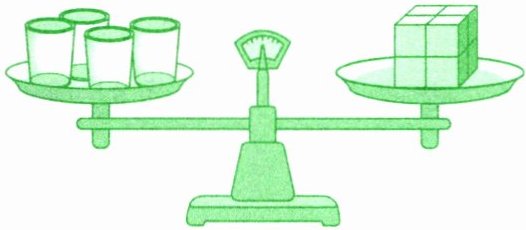 7. 下图中每个方木块重62克。平均每个杯子重多少克?