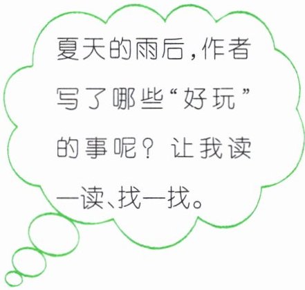 夏天的雨后,作者写了哪些“好玩”的事呢?让我读一读、找一找。
