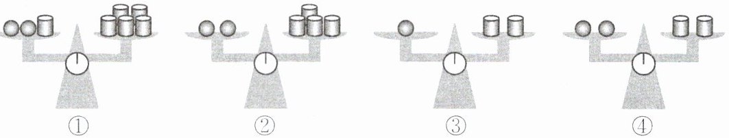 4. 如图,下列四个天平中,相同形状的物体的质量是相等的,其中天平①是平衡的,根据天平①,后面三个天平中同样平衡的个数是(
