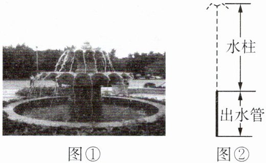 11. 如图①,某中学新建了一个音乐喷泉.如图②,喷泉的水从出水管喷出,形成漂亮的水柱.当出水量达到最大时,喷泉会响起优美的音乐,此时水柱的高度比出水管的高度的2倍还高10 cm.设出水管的高度为$x$ cm.