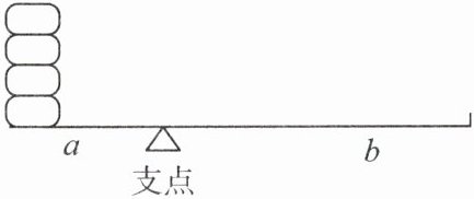 2. 如图,用一根质地均匀的长30cm的直尺和一些相同的棋子做实验.已知支点到直尺左右两端的距离分别为a,b,通过实验可得到如下结论:左端棋子枚数×a= 右端棋子枚数×b,直尺就能平衡.现已知$a = 10\ cm$,且左端放了4枚棋子,那么要使直尺平衡,右端需放棋子(