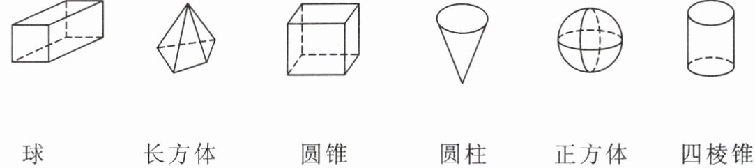 球 长方体 圆锥 圆柱 正方体 四棱锥