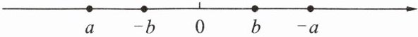 解:因为$a < 0$,$b > 0$,所以$a$在原点左边,$b$在原点右边。又因为$|a| > |b|$,所以$a$到原点的距离大于$b$到原点的距离。$-a$是$a$的相反数,在原点右边且到原点距离等于$|a|$;$-b$是$b$的相反数,在原点左边且到原点距离等于$|b|$。