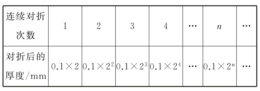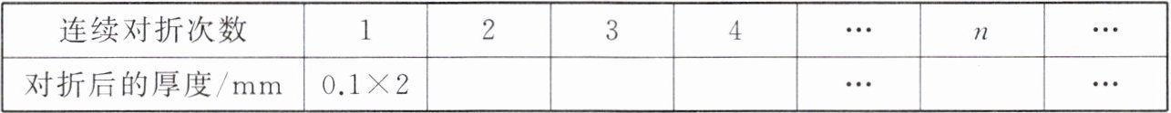 变式:小明在高度为3m的教室内做折纸游戏,他想把一张厚度为0.1mm的纸连续对折.