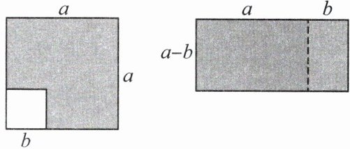 【解析】:本题可根据正方形和长方形的面积公式分别求出两个图形中阴影部分的面积,再通过对比得出等式。