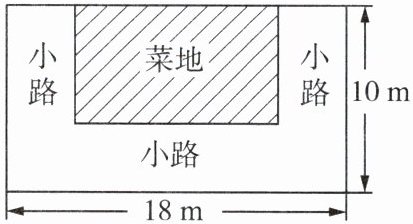 6.如图,池塘边有一块长为$18\ m$、宽为$10\ m$的长方形土地,现在将其余三面留出宽为$x\ m$的小路,中间余下的长方形部分做菜地.用代数式回答下列问题.