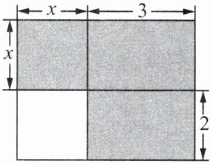 两个小长方形的长分别为$x$和$3$,宽都为$2$,但我们需要的是它们组合后的面积,即一个长为$x+3$,宽为$2$的长方形面积减去重合的部分(重合部分是一个长为$2$,宽为$x$和$3$重合的小长方形,但此处我们不需要单独计算它,因为我们已经通过组合长方形的形式避免了重复计算),所以组合后的面积为$2(x+3)-2×(重复计算的宽中多算的部分(此处为0,因为我们通过组合已经避免了重复))=2x+6-0=2x+6$中的$2x$部分与大正方形不重叠,而$6$是两个小长方形中除了与大正方形重叠部分外的总面积。但更直观的理解是,阴影部分比大正方形多了两个小长方形的面积(不重复计算),即$x×2+3×2=2x+6$。