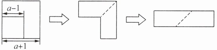 4.如图,从边长为$(a + 1)\ cm的正方形纸片中剪去一个边长为(a - 1)\ cm$的正方形($a > 1$),剩余部分沿虚线又剪拼成一个矩形(不重叠、无缝隙),该矩形的面积是